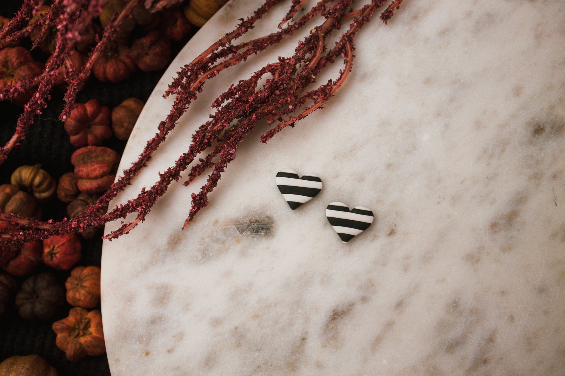 Black and White Striped Heart Studs