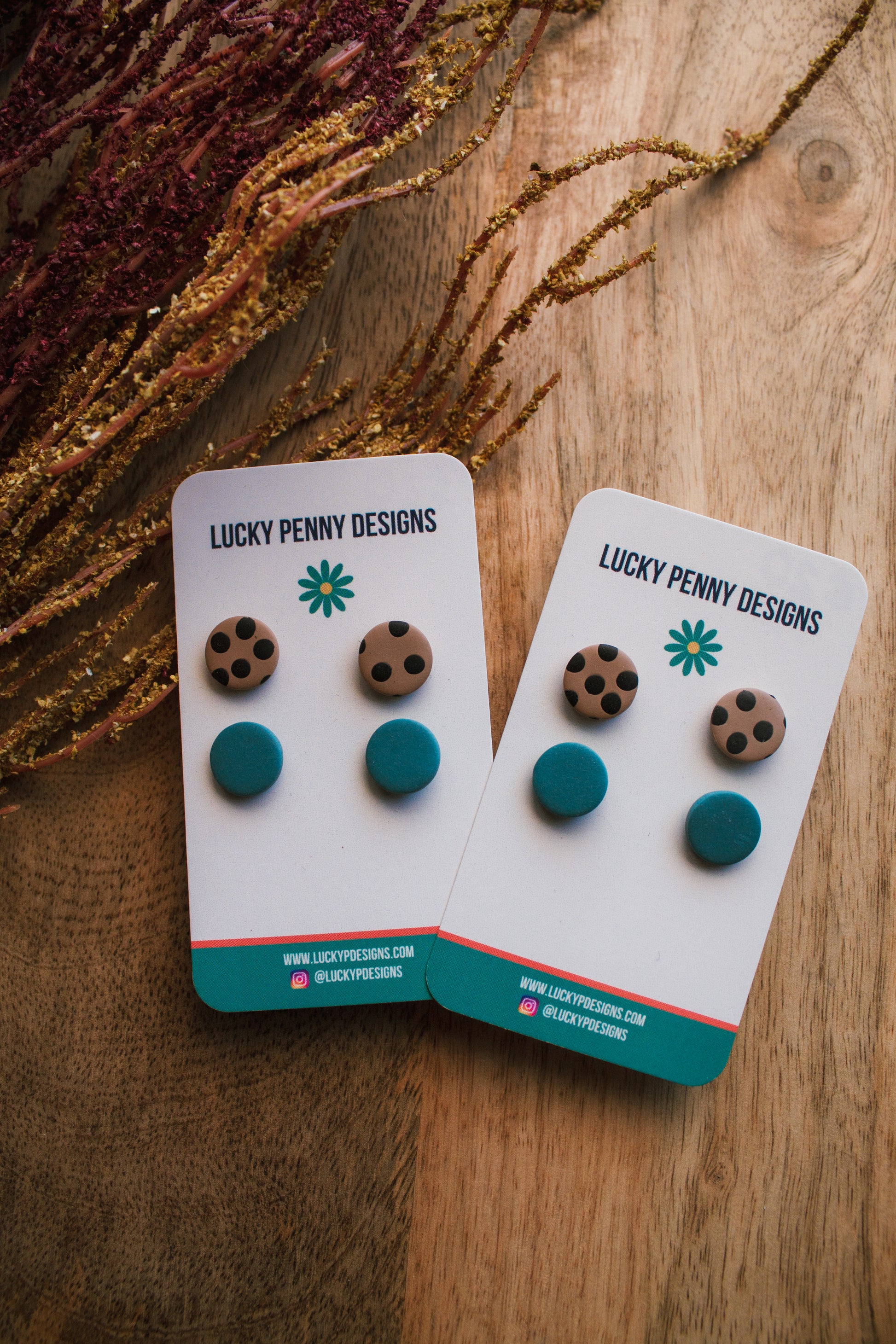 Introducing a chic and playful duo - the Brown and Black with Blue Studs! With its simple yet stylish design, these earrings feature a unique combination of blue, brown, and black studs that will add a pop of color to any outfit. Perfect for those looking for a touch of flair!