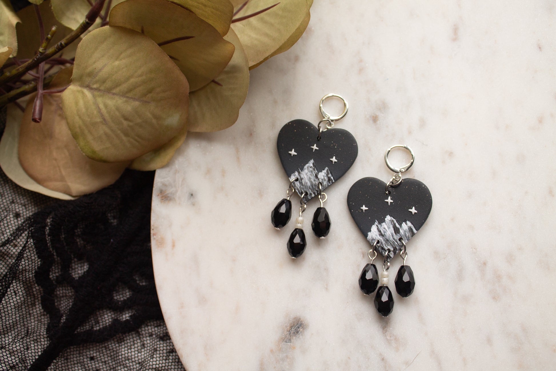SJM Licensed* Ramiel Night Court Heart Beaded Earrings (Darker colors)