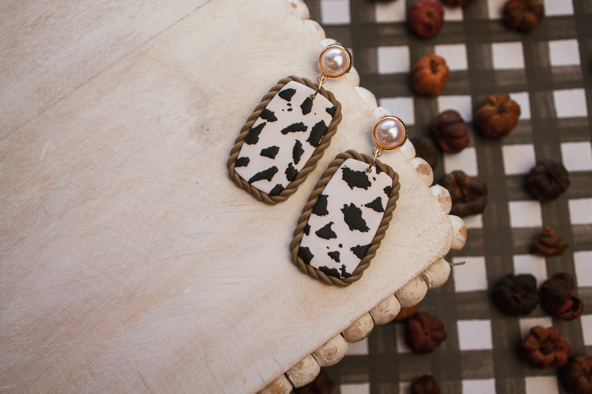Giddy up your earring game with cow print earrings. These western-inspired earrings add a playful touch to any outfit. Perfect for anyone looking to moo-ve beyond boring accessories.