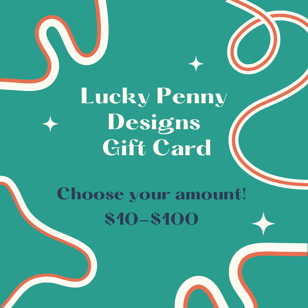 Give them the gift of choice with a Lucky Penny Designs gift card! Gift cards are available in $10, $25, $50, $75 or $100.