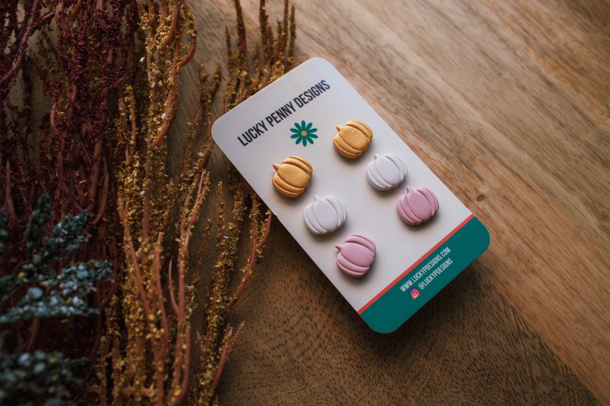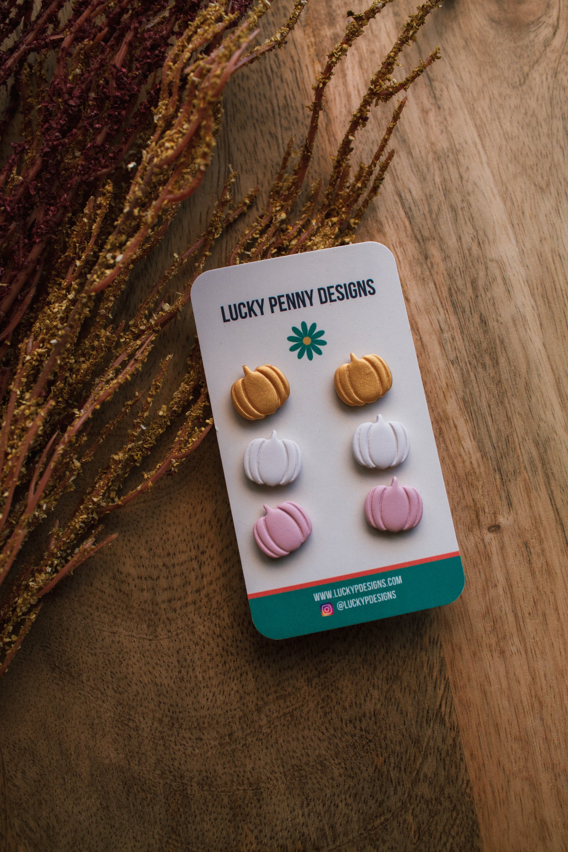 Add a girly and playful touch to your Halloween look with our Girly Pumpkin Stud Trio! Featuring three adorable pumpkin-shaped studs in gold, white, and pink, these earrings are the perfect accessory for the season. Get ready to stand out with these unique and quirky studs!