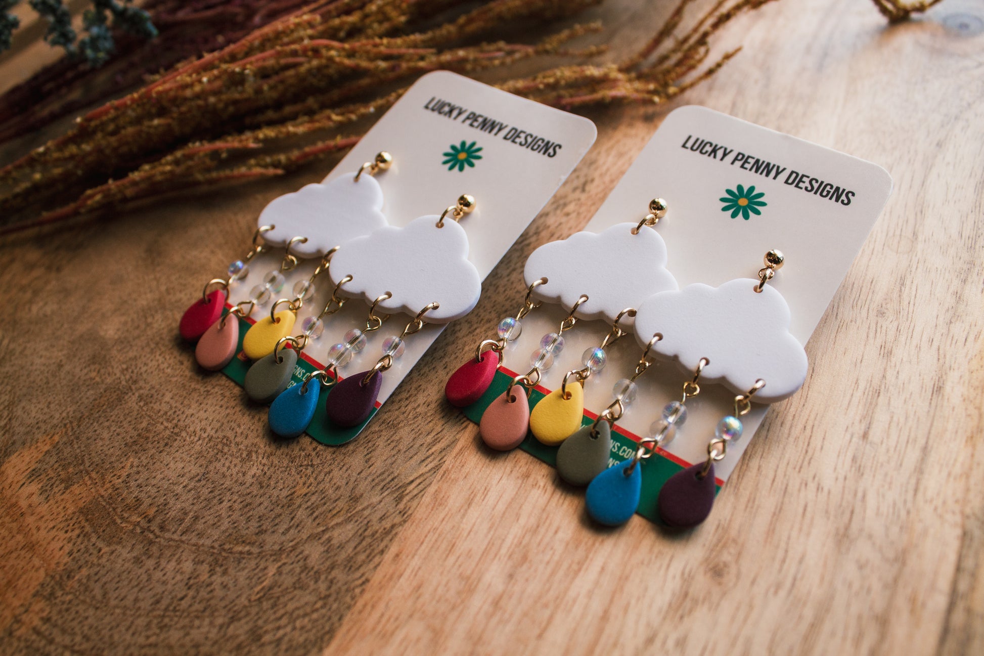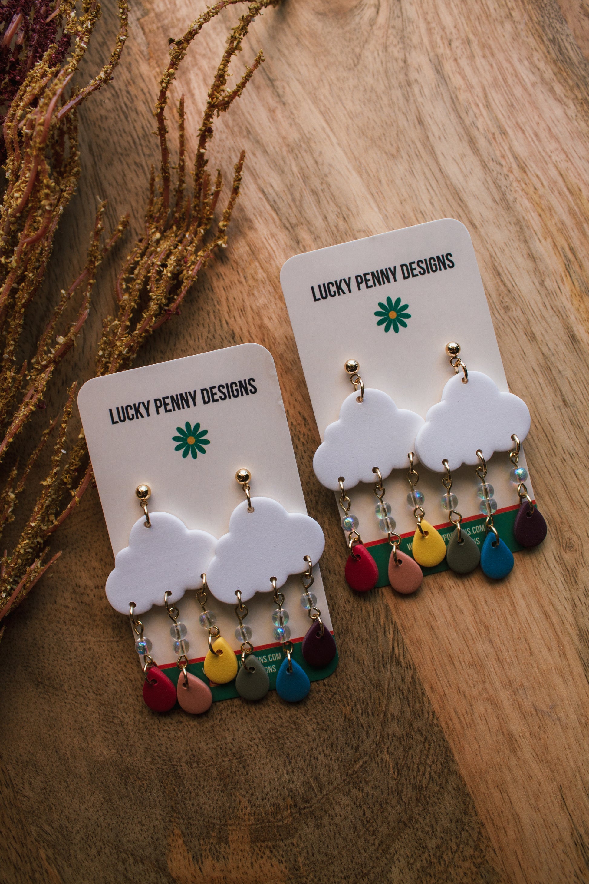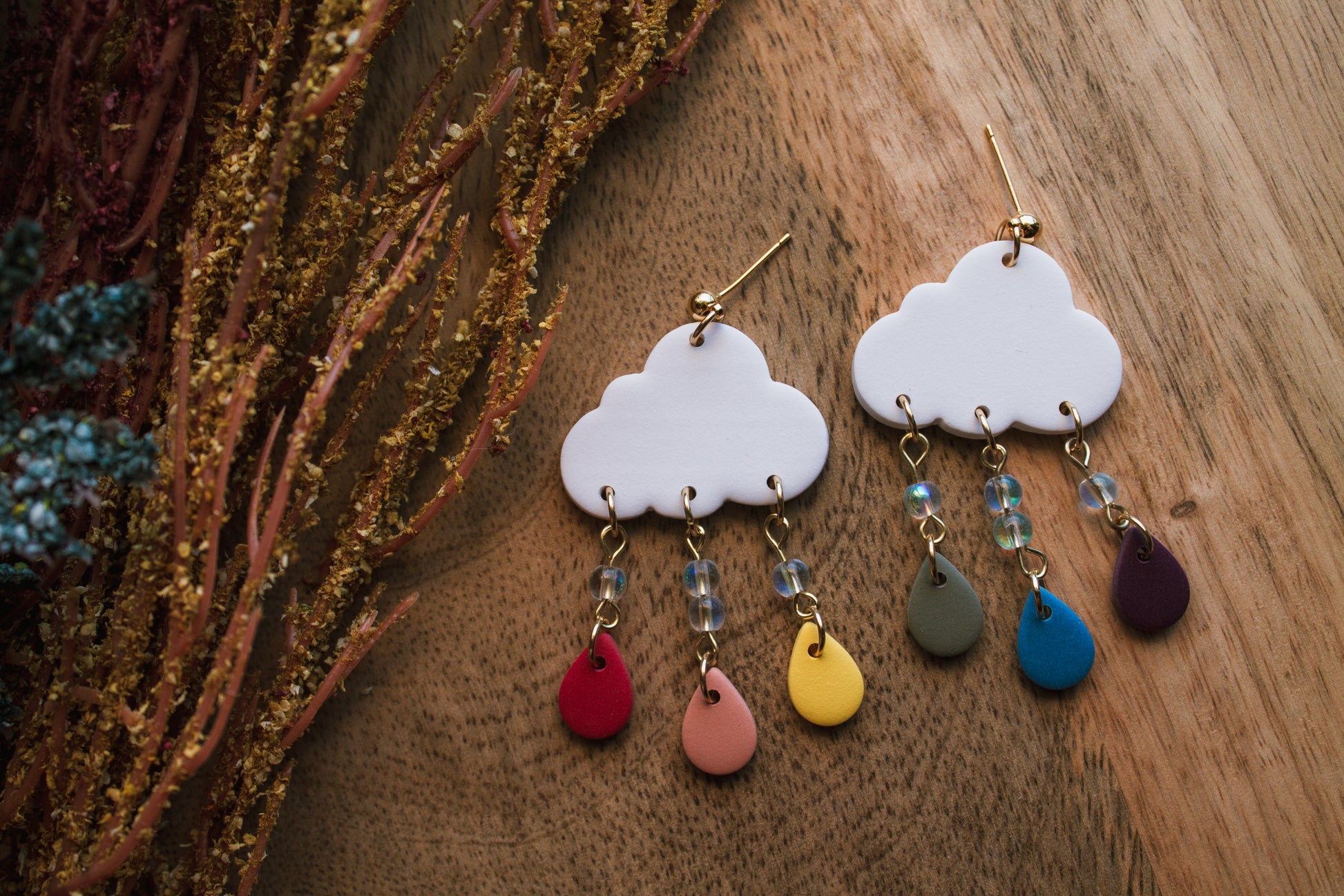 Add a pop of quirky fun to any outfit with these Rainbow Cloud Dangle Earrings! Featuring bright colors and playful cloud and rainbow designs, these earrings are sure to make you stand out in style. Perfect for adding a touch of whimsy to your look. (Warning: may cause compliments and smiles!)